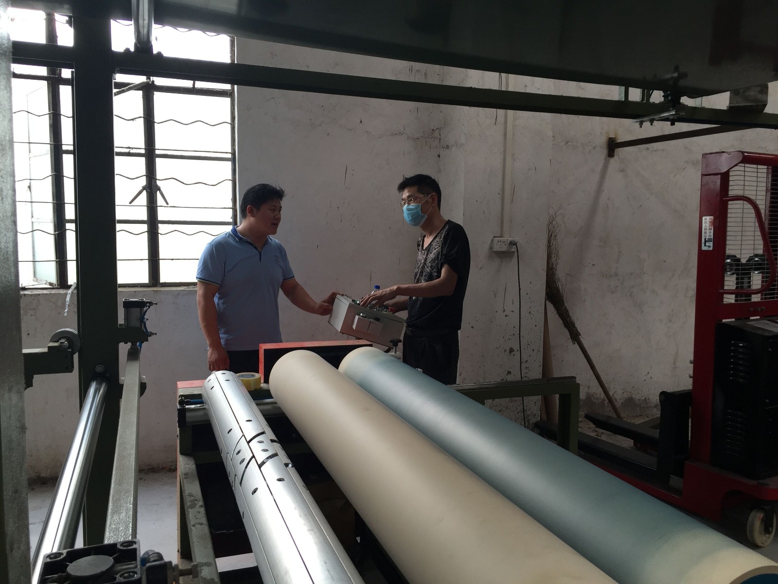 2016年9月20日,我司售后服務(wù)部汪經(jīng)理和電氣工程師易工前往廣州新塘某復(fù)合廠為其進(jìn)行LD-064A1服裝布復(fù)合機(jī)的新機(jī)量產(chǎn)前調(diào)試和操作培訓(xùn)。