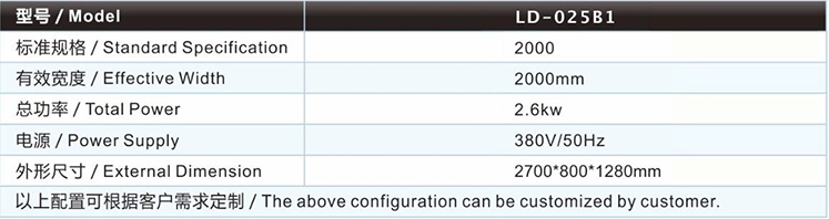 | 圓刀分條機(氣動型)LD-025B1主要技術(shù)參數(shù) / Major technical parameters |