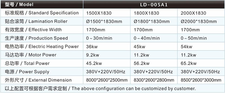 | 球革復合機/貼合機-EVA強力膠復合機/貼合機LD-005A1的主要技術(shù)參數(shù) / Major technical parameters |